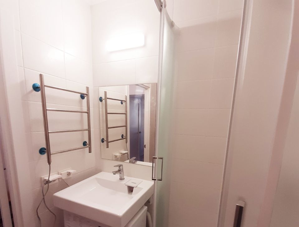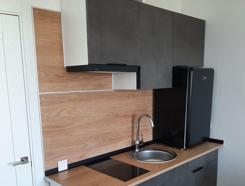 Сдаётся квартира-студия с мебелью в новом доме, 15 этаж. Всё что нужно для комфортной жизни: на кухне варочная поверхность, вытяжка, микроволновка, холодильник, раковина, в комнате двухспальная кровать, шкаф-купе, стол, стулья, в санузле душевая кабина, стиральная машина, в прихожей шкаф и банкетка. Красивый вид из окна, парковка во дворе, свежие детские площадки. Все преимущества нового района. 20 минут пешком до ост. Ручьи, автобусы по всему городу + до метро. Стоимость 23000 + залог 23000 + КУ 3000 + счётчики. Без комиссии. Просмотр по договорённости