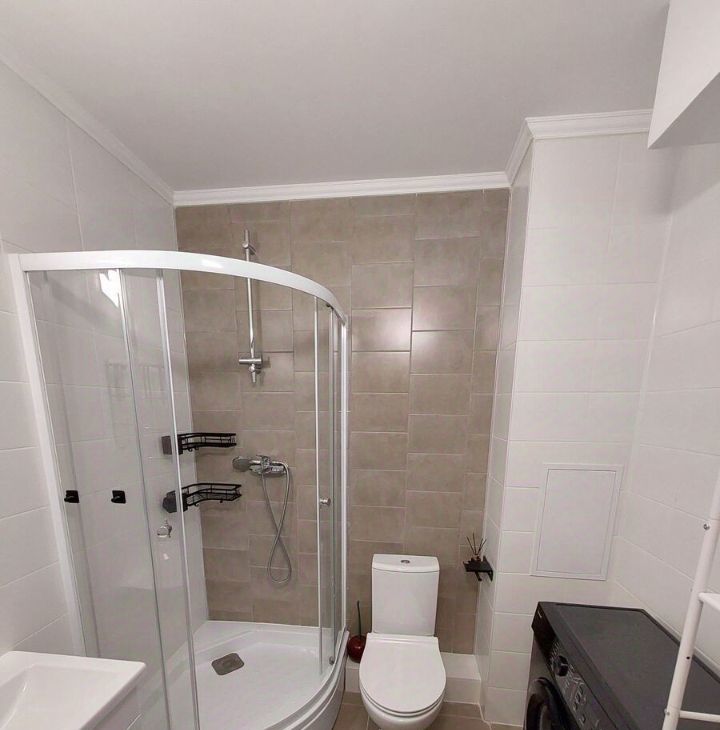 Помимо мебели в квартире есть: холодильник, стиральная машина, телевизор, посуда
