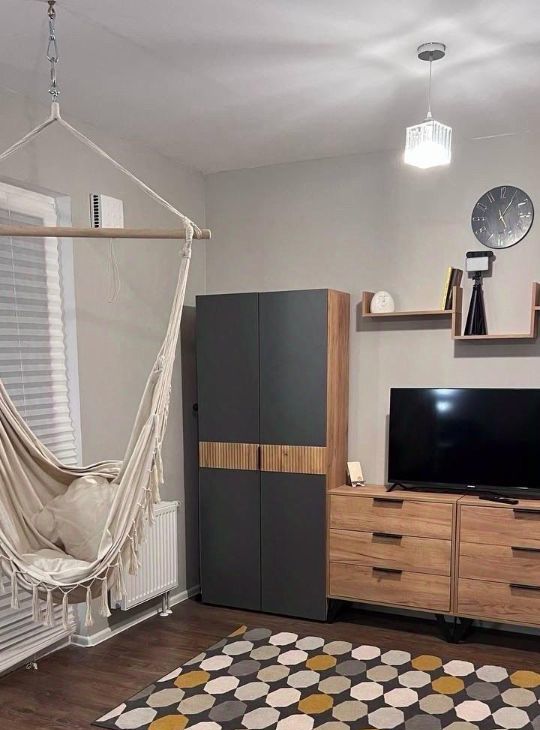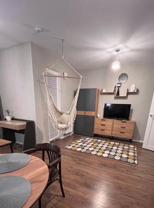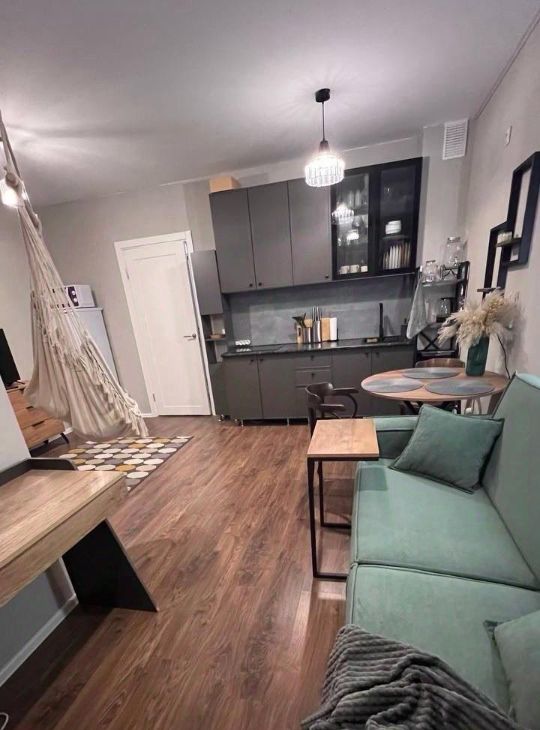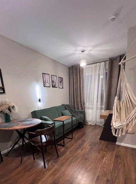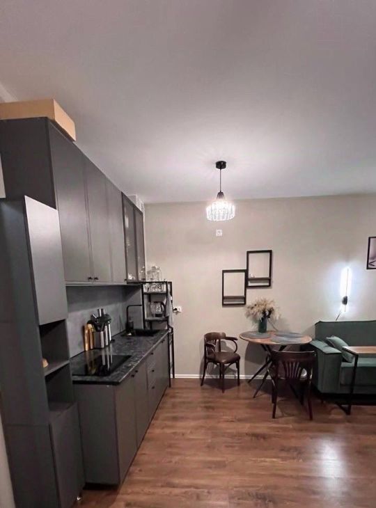 Квартира с евроремонтом, продуманной планировкой и качественной отделкой. В студии есть все необходимое для комфортного проживания: новая мебель на кухне и в комнате, современная техника, включая холодильник, телевизор и стиральную машину. Ванная комната оборудована душевой кабиной.