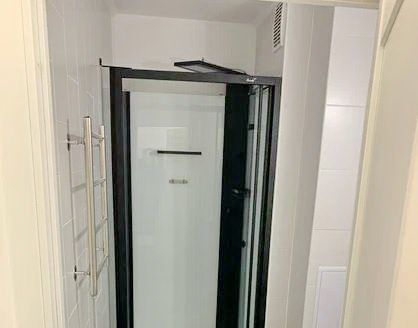 В санузле душевая кабина, подключена стиральная машина
