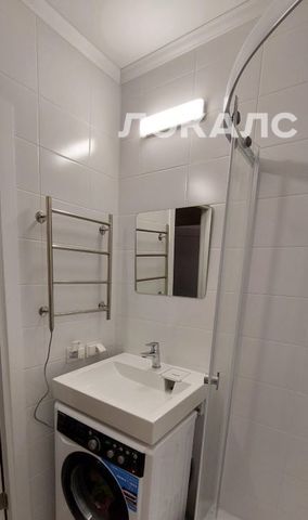 Стиральная машинка для Вашего удобства и лучшей шумоизоляции располагается в ванной комнате.