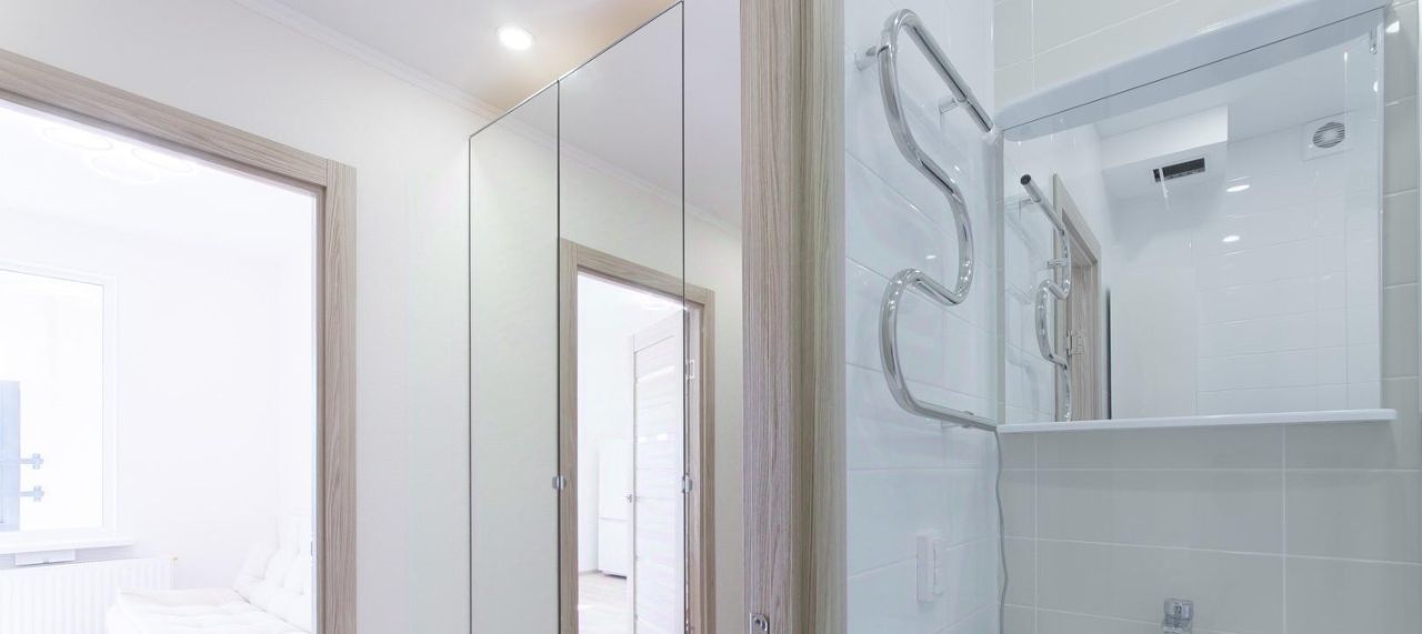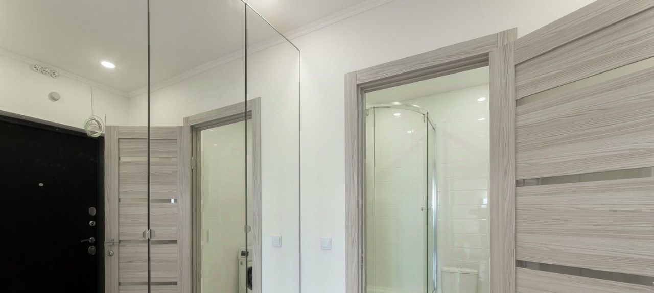 В коридоре находится очень вместительный и практичный зеркальный шкаф.