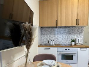 Ecть все для комфортной жизни: мебель, бытовая техника, включая кровать, раскладной диван, стиральную и посудомоечную машины, холодильник, электрическую плиту, вытяжку, духовку. На кухне есть 2 барных стула.
