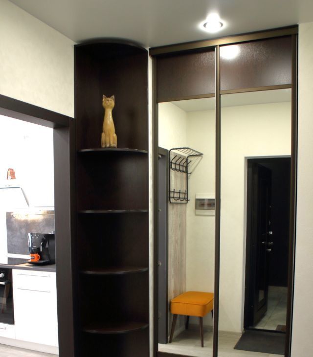 - Встроенная гардеробная в нише, в которую вмещаются все вещи. Дополнительный шкаф не нужен!