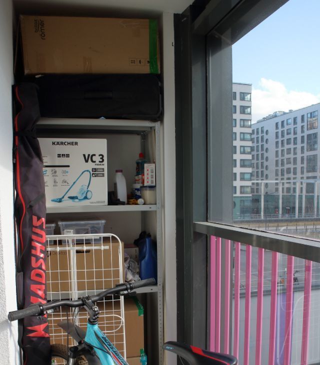 - Оборудованная зона хранения на балконе