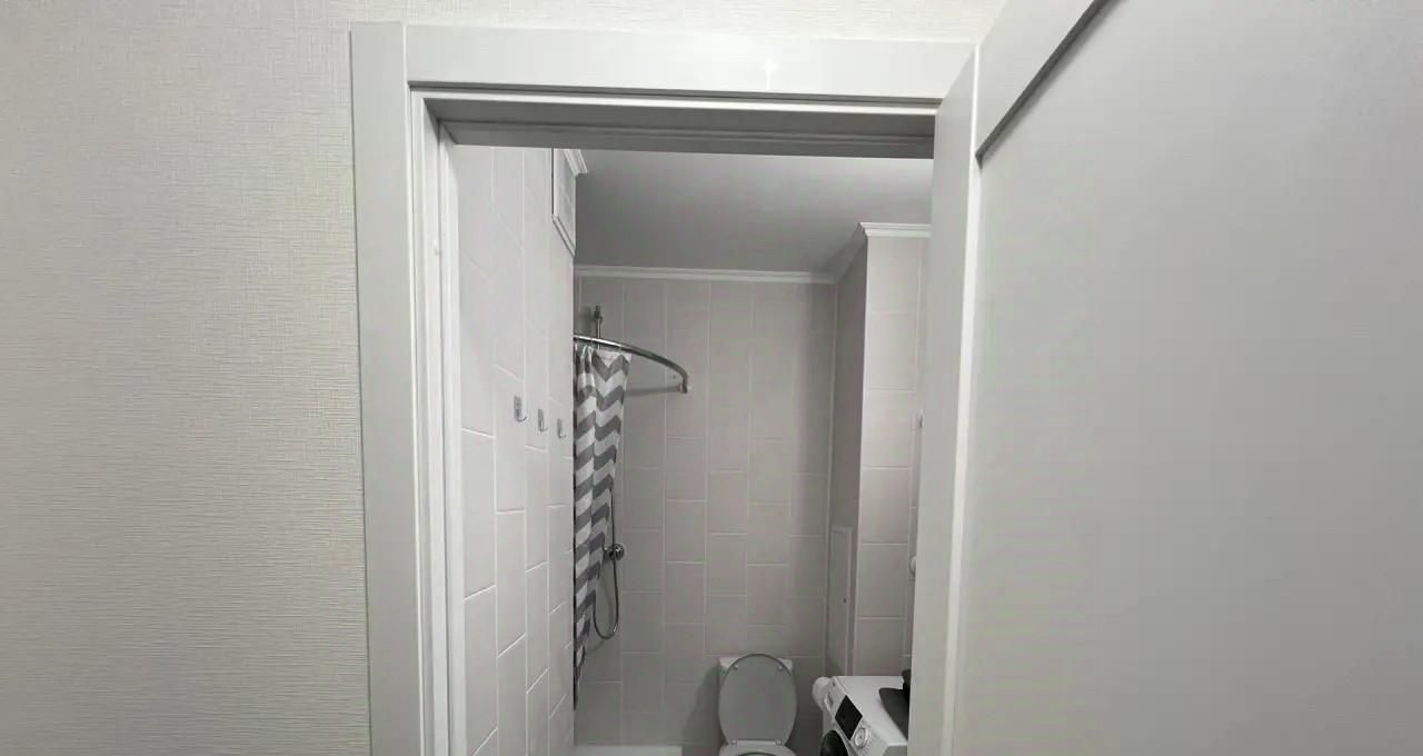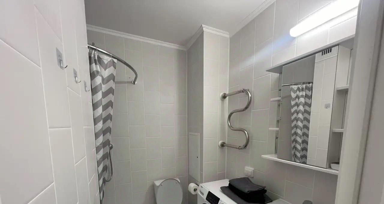 Вместительные шкафы обеспечивают удобство хранения. Санузел совмещенный, выполнен в светлых тонах.