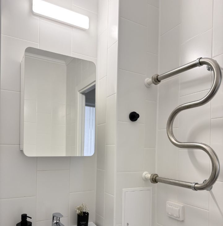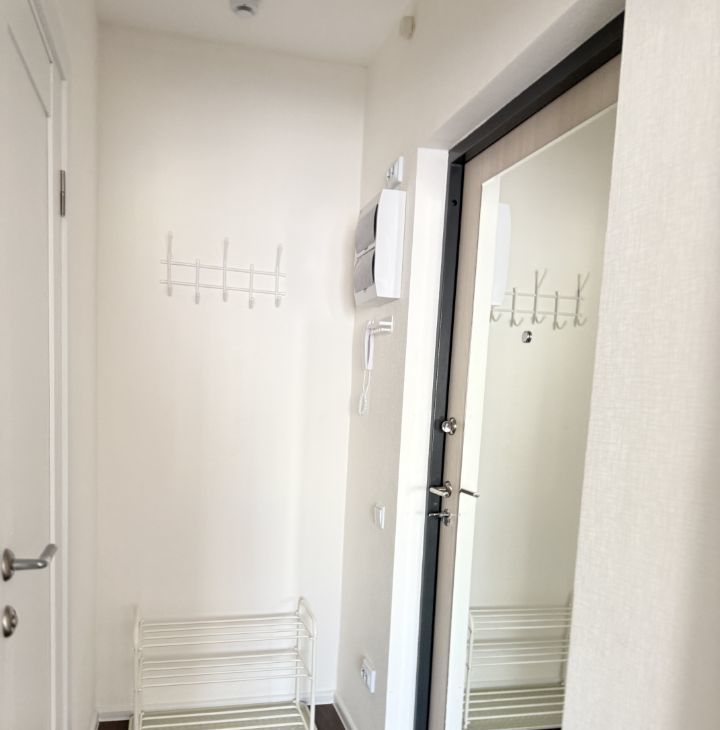 В прихожей ниша для одежды, достаточно просторный санузел для студии, в санузле кроме полотенцесушителя установлена батарея. Не граничит с другими студиями.