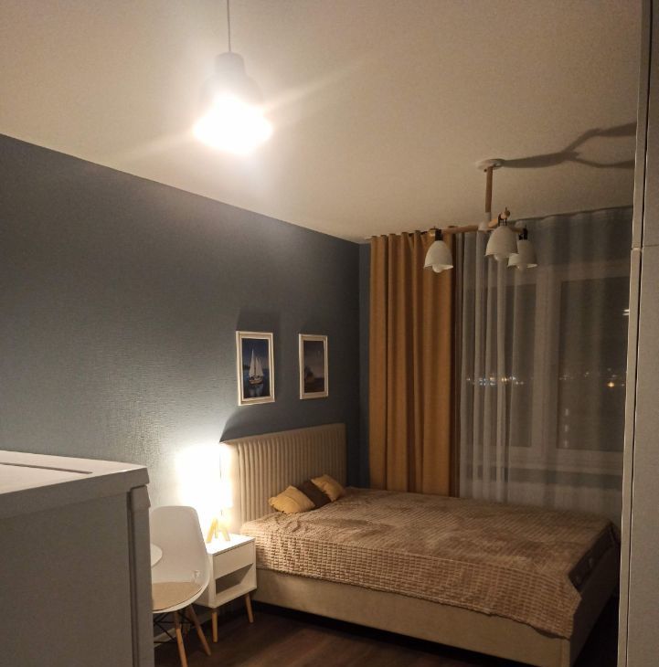 В квартире есть всё для комфортного проживания: двухспальная кровать (ширина 140 см), матрас с чехлом, вместительный шкаф IKEA.