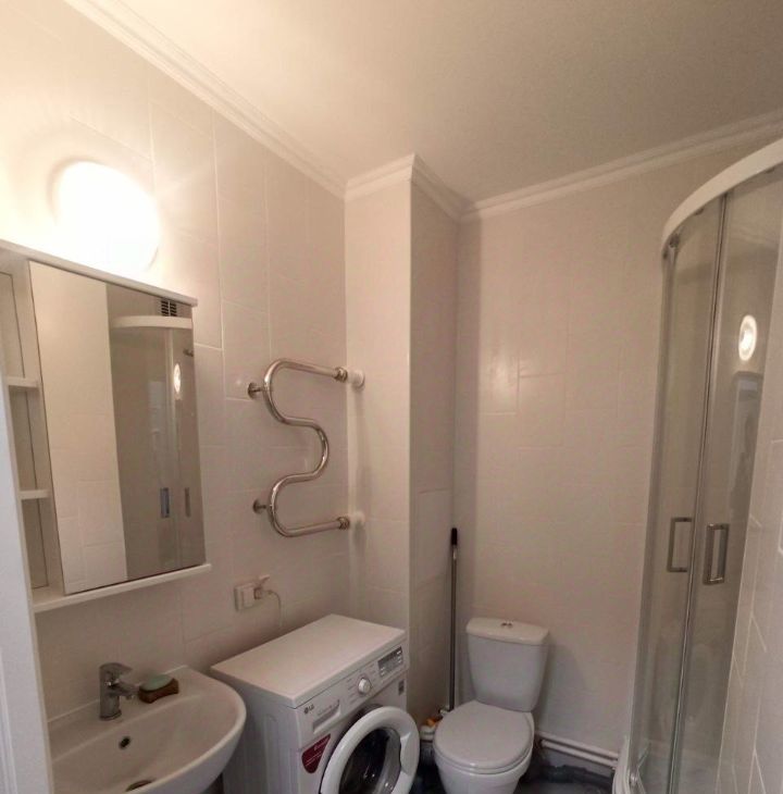 В ванной: тихая стиральная машина LG 4 kg прямой привод, вся сантехника.