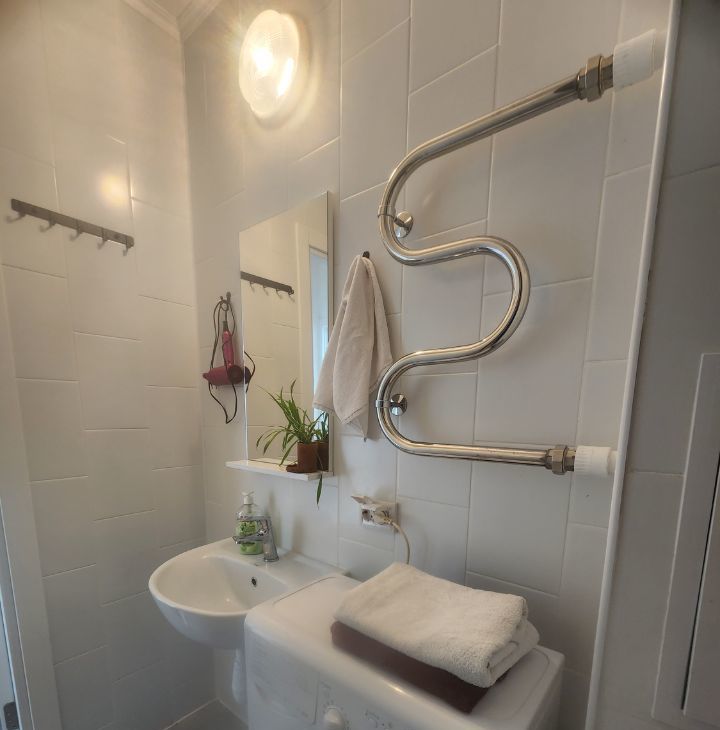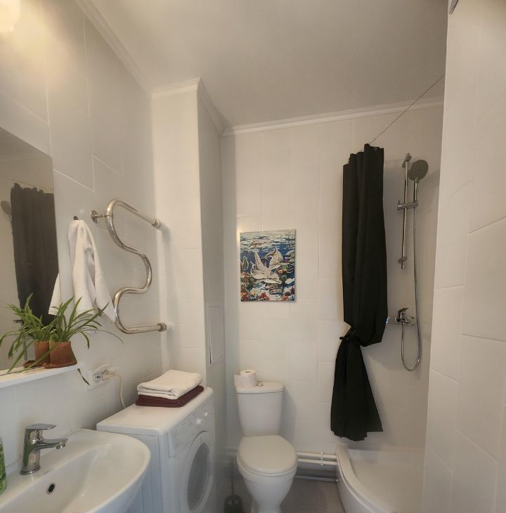 В санузле: Душевая кабина, раковина, стиральная машина.