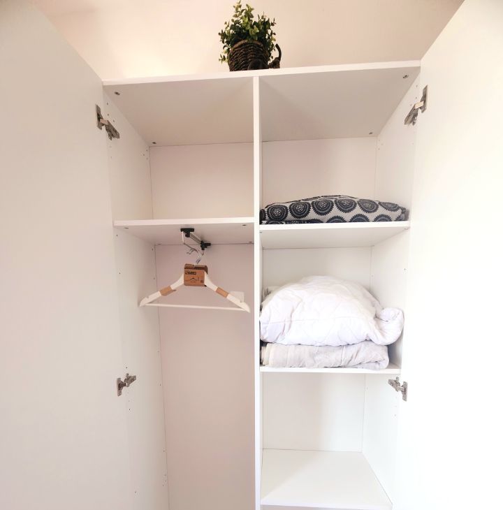Вся необходимая мебель и техника: раскладной диван, шкаф, журнальный столик.