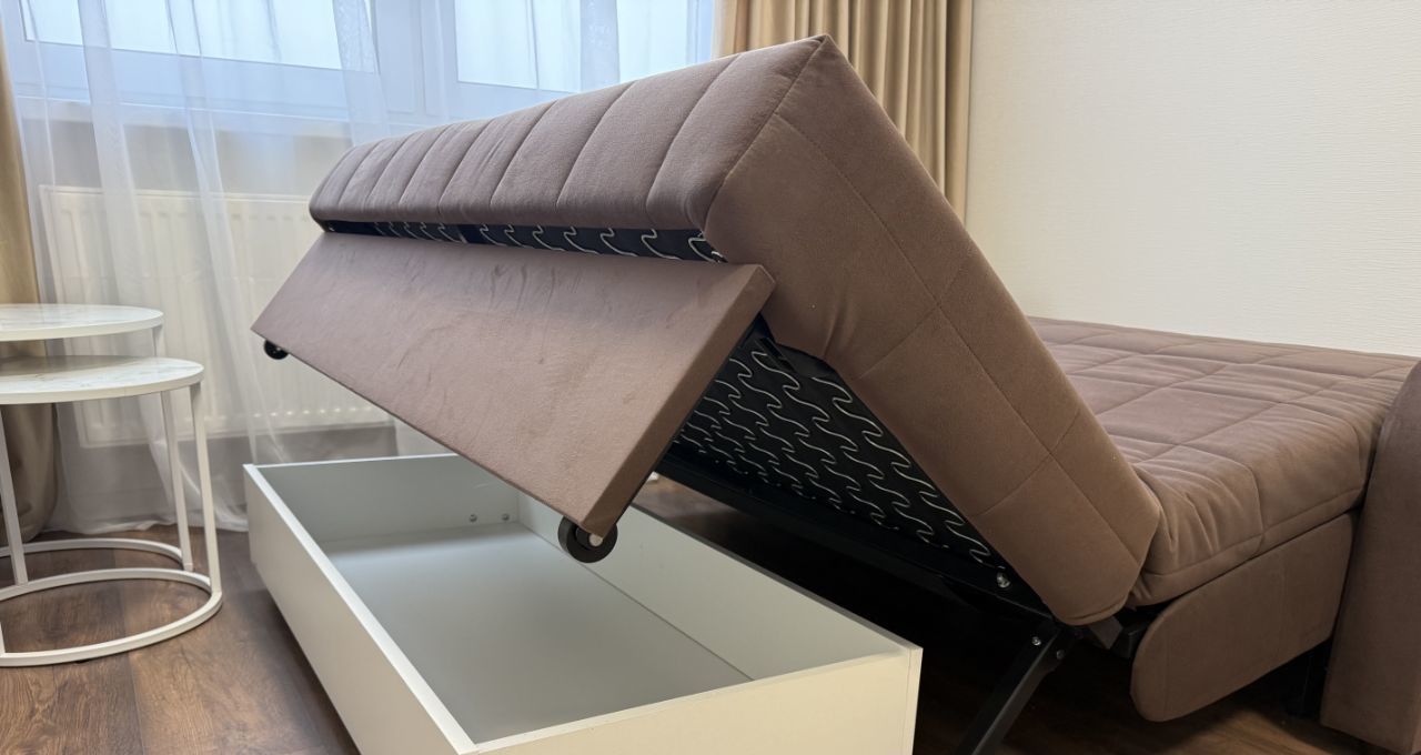 Диван-аккордеон раскладывается в полноценное двухметровое спальное место без стыков.