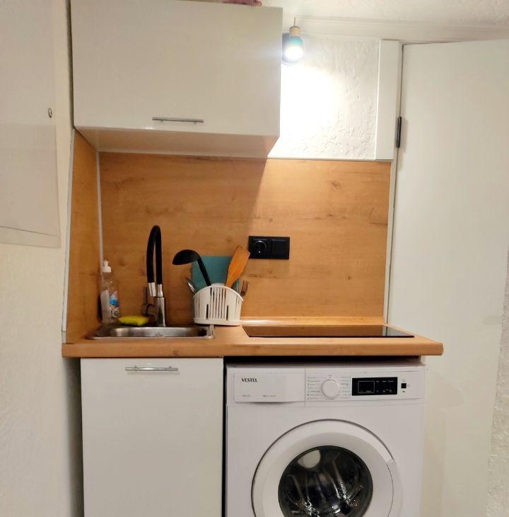 в апартаментах есть кухня и душ. Есть вся посуда для приготовления пищи, а так же фен, утюг, полотенца, постельное белье, стиральная машина, телевизор, индукционная варочная плита, холодильник, вай-фай, электрочайник. Цокольный этаж. Идеально подходит как для студентов, так и для гостей города.