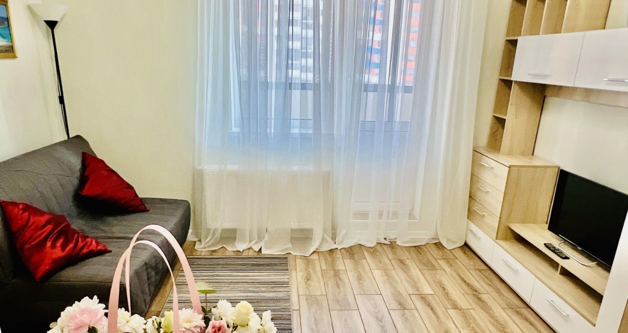 отличная квартира студия в новом ЖК Полис на Комендантском. квартира полностью укомплектована мебелью и техникой для комфортного проживания! все новое! сдается впервые!!! условия аренды: вредная плата плюс КУ плюс счетчики. залог.