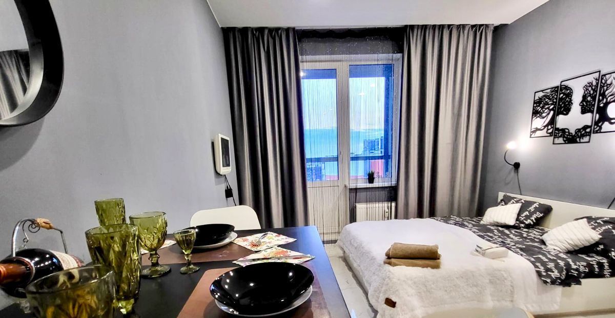 Сдам комфортную, видовую студию с видом на залив, лес заповедник, Газпром башню Лахта. В квартире есть всё для комфорта:Стиральная маш., микроволновка, холодильник, ТВ, WI FI