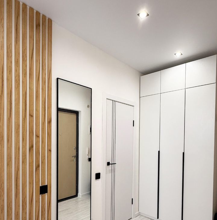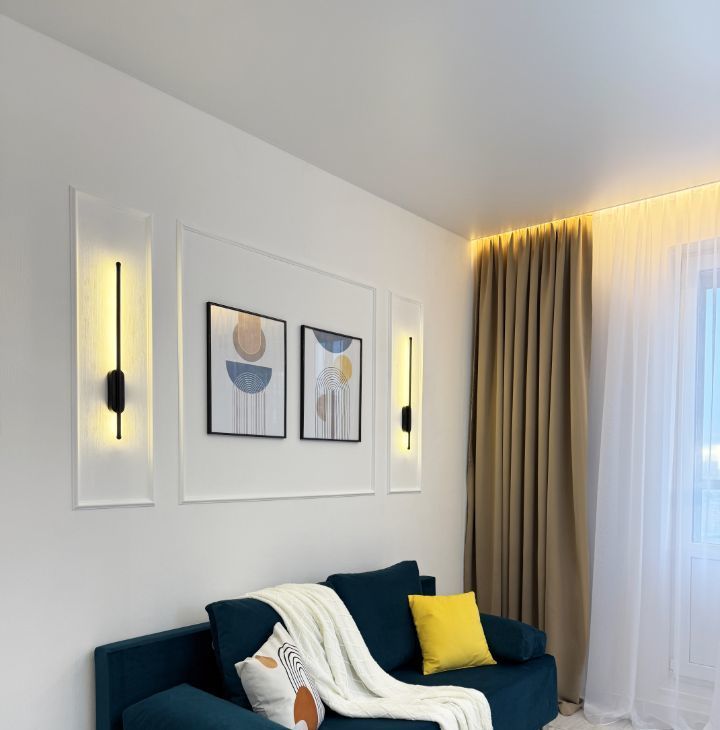 В квартире сделано 2 сценария освещения (день, вечер/ночь), что экономит потребление света за счет светодиодных светильников, закарнизного интерьерного света и декоративной стены с подсветкой.