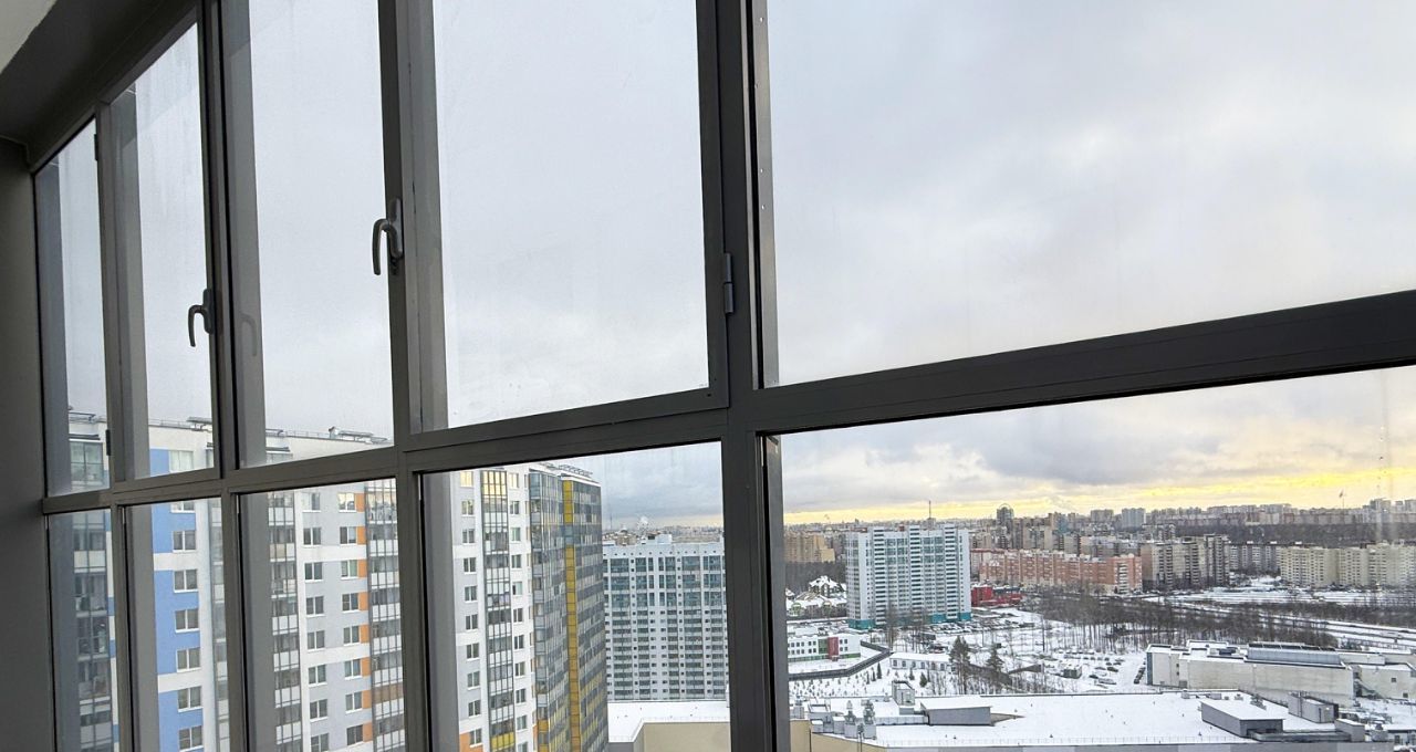 У квартиры увеличенный балкон - 5,7м с большими панорамными окнами в пол и прямым видом на город (вдалеке даже виден купол и колоннада Исаакиевского собора), также видно 2 флага в парке 300-летия Петербурга. Ночью город очень красиво подсвечен, что создаёт потрясающую атмосферу.