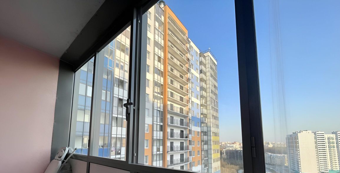 Отдельное удовольствие — большая лоджия. Не окна в окна, а открытый вид, в том числе на Лахта Центр. Вечером — особенно красиво, с подсветкой.