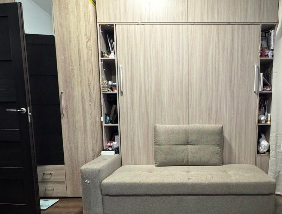 - два шкафа: в прихожей распашной трехдверный с зеркалом и в комнате;