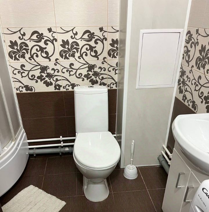 Санузел совмещённый, оформлен стильной плиткой с цветочным узором. В квартире запрещено курение, а также проживание с детьми и животными.