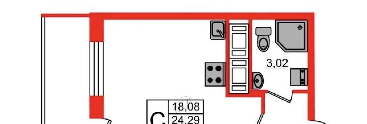 Студия Санкт-Петербург ул. Плесецкая, 20к1 (24.2 м²)