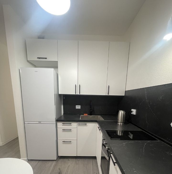 Духовой шкаф, варочная панель, электрочайник, посудомоечная машина, стиральная машина, холодильник, телевизор, Wi-Fi роутер, установлен фильтр для питьевой воды.