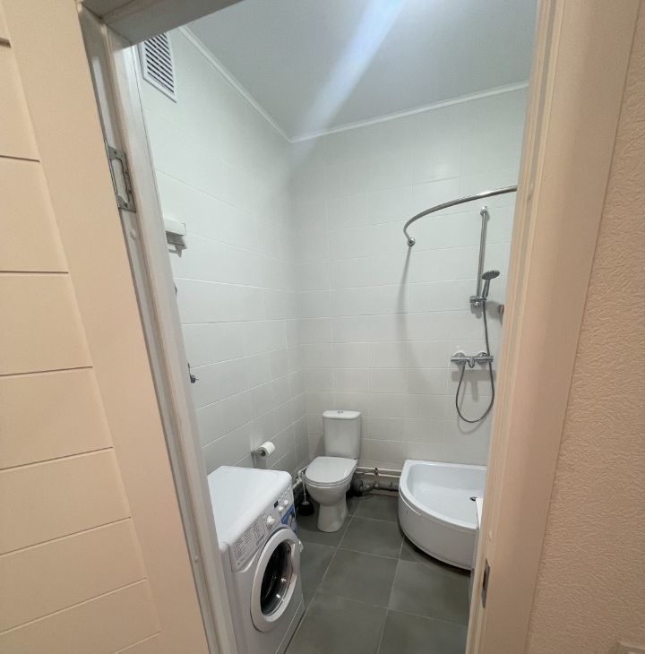 Санузел оснащен вместительной душевой поддон электрическим полотенцесушителем.