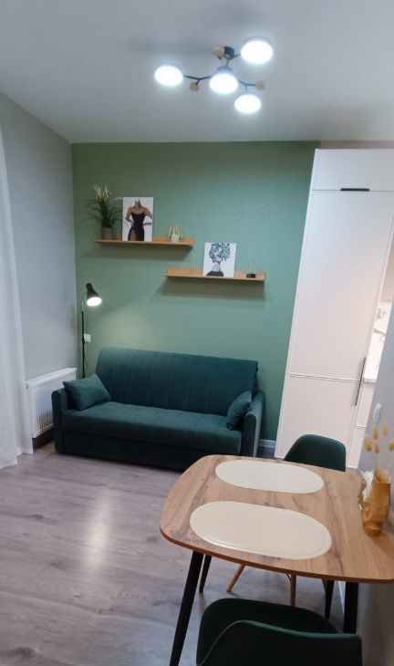 Вашему вниманию предлагается абсолютно новая квартира-студия с уникальной планировкой, дизайнерским ремонтом, новой мебелью и техникой. Необычная планировка квартиры позволила грамотно зонировать пространство, где есть выделенная кухня, зона гостиной и спальная зона. В прихожей оборудован вместительный гардероб. А застекленная лоджия станет вашим любимым местом отдыха с чашечкой кофе...