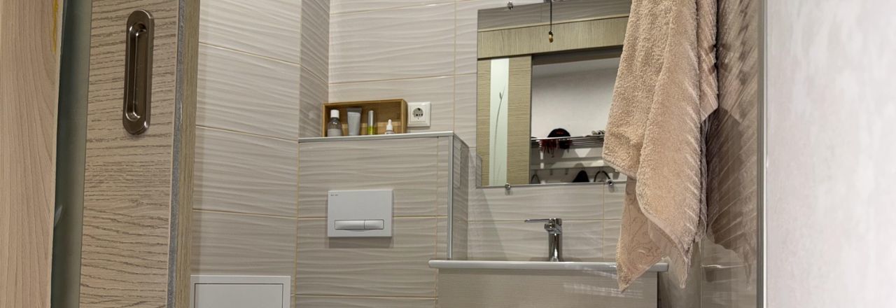 • Эргономика: Сдвижная дверь в санузел не съедает место в прихожей.