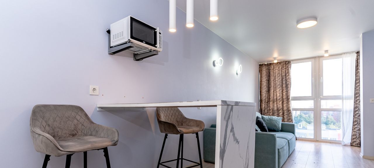 Дом кирпич-монолит 2016 года постройки. ЖК "До ре ми" с закрытой территорией и видеонаблюдением. Есть подземный и наземный паркинг. Квартира находится на 11-м этаже, с которого открывается потрясающий вид на Петербург и его окрестности. В квартире сделан дизайнерский ремонт на полу ламинат, в санузле плитка и теплый пол. Квартира полностью оборудована всем необходимым для комфортного проживания: холодильник, варочная панель, духовой шкаф, микроволновая печь, телевизор. Всё согласно фотографиям.