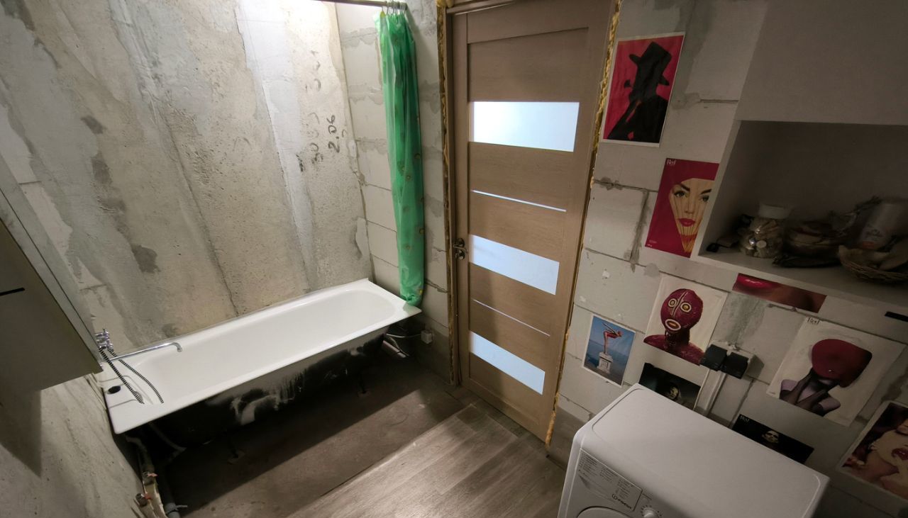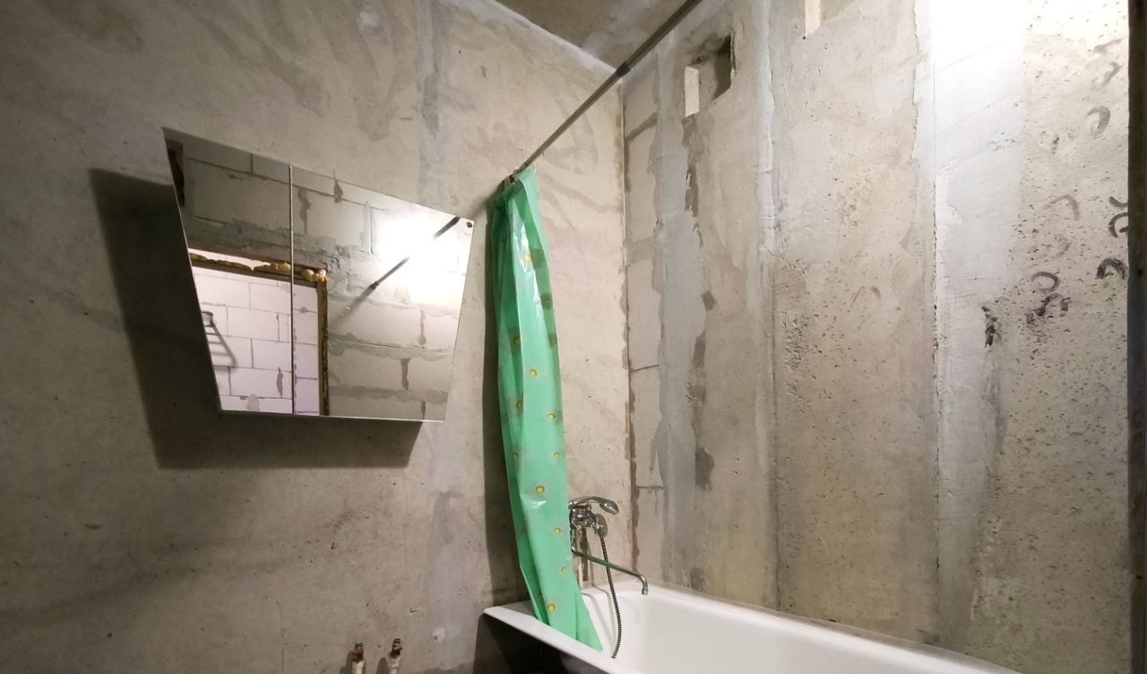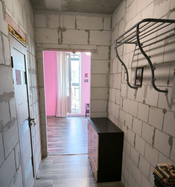 Квартира жилая, санузел и коридор без отделки. Стены, пол, потолок бетон, с постройки (всё видно на фото)