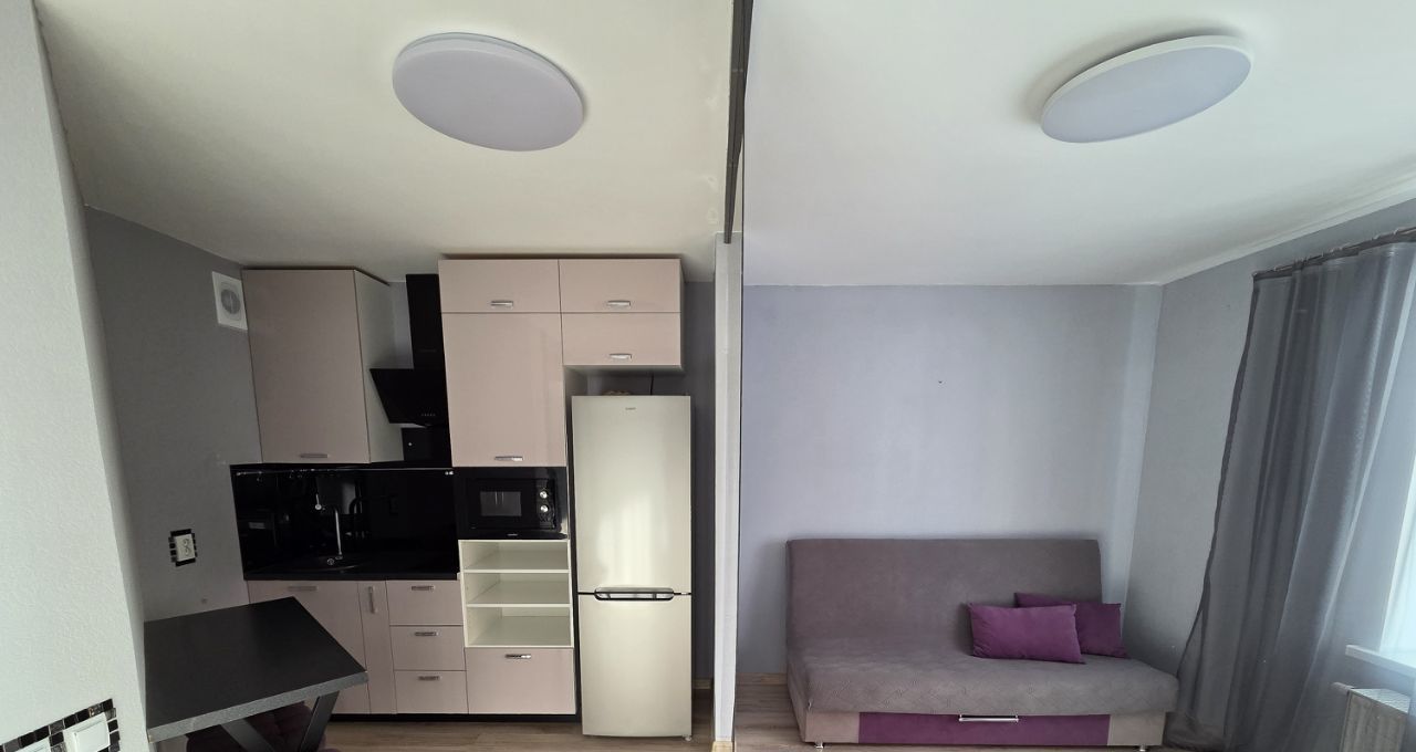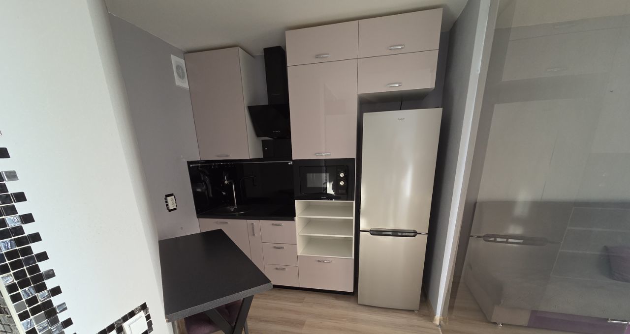 Квартира в отличном состоянии, после косметического ремонта. Площадь с балконом 31,1 м2. Установлены новая варочная панель, микроволновая печь, холодильник, вытяжка, вместительный шкаф (220х200), штора в ванной, тюль. Диван-книжка раскладывается, удобный, с вместительными ящиками для хранения. Большой балкон со шкафом и хорошим видом.