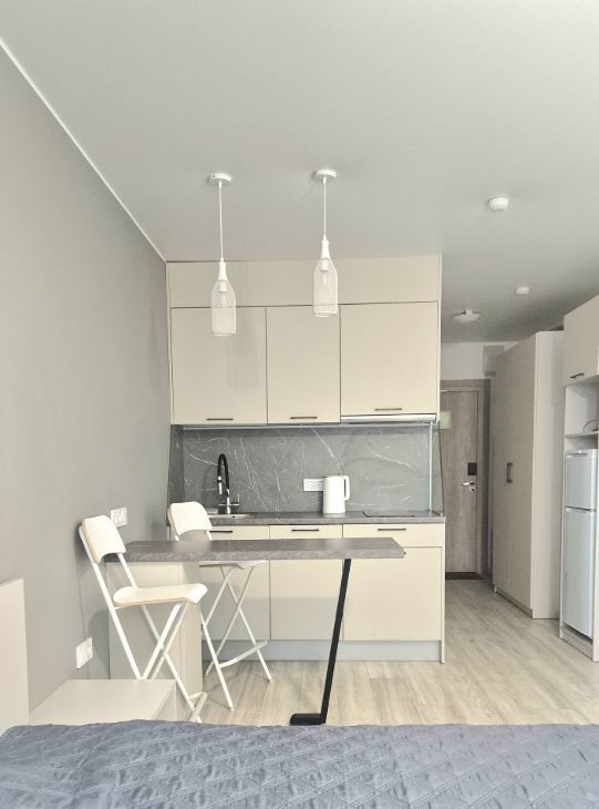 Предлагаем вашему вниманию стильные апартаменты-студию в аренду в Санкт-Петербурге на улице Салова, 61. Удобное расположение на 5 этаже 18-этажного дома, всего в 3 минутах пешком от метро "Бухарестская". Общая площадь составляет 24,5 кв. м, жилая — 20 кв. м. Окна выходят во двор, что гарантирует тишину и уют.