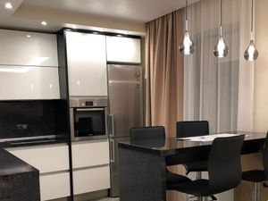 Стильная квартира на длительный срок в комплексe Бизнес клaсcа Елагин-апарт с видом на сквер и реку.