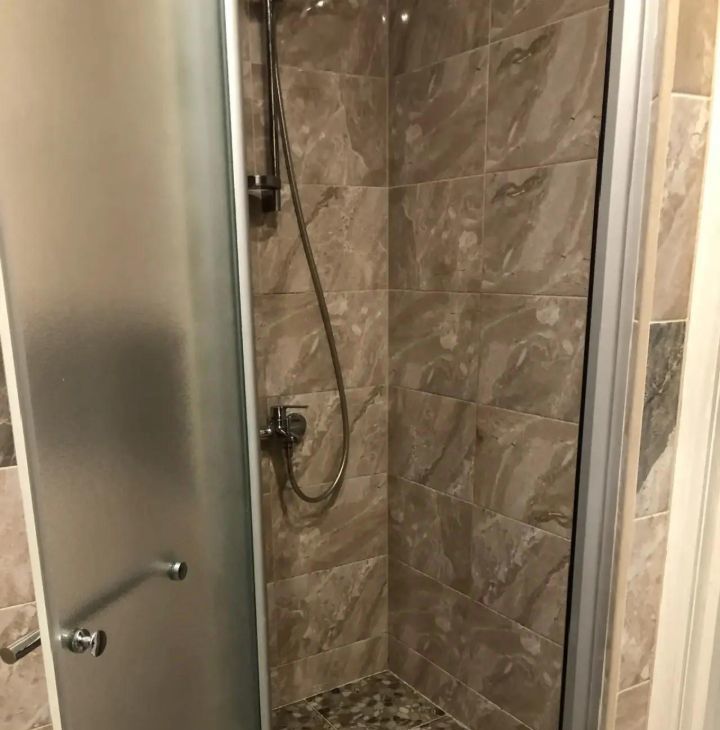 Вытяжка имеется, качественная душевая.