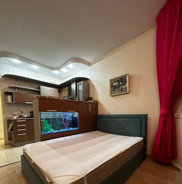 Сдается на длительный срок (от 1 года) для девушки или семейной пары квартира студия от собственника удачной квадратной планировки в Приморском р-не Спб, ул. Савушкина, в пешей доступности метро Беговая (12 мин. пешком). Современный район, дом с консьержем, у парадной камеры, в шаговой доступности есть все для комфортной жизни: гипермаркеты, фитнес-клубы, аптеки, парк 300-летия с пляжем и шикарной набережной, транспортные развязки. В квартире сделан свежий евроремонт, есть балкон с видом на Финский залив. Есть все необходимое, чтобы заселиться сразу же: вместительный шкаф, холодильник, стиральная машина, варочная панель с духовкой, посуда, кожаная кровать и новый спальный матрац, постельное белье новое, утюг, чайник, кожаный диван, предметы интерьера - заселяйся и живи. Кухня от комнаты отделена огромным аквариумом. Рыбок сейчас нет, но можно завести их по вашему желанию, пока аквариум просто интерьерный с подсветкой и пузыриками. В доме 2 лифта, вокруг дома всегда есть возможность парковки.