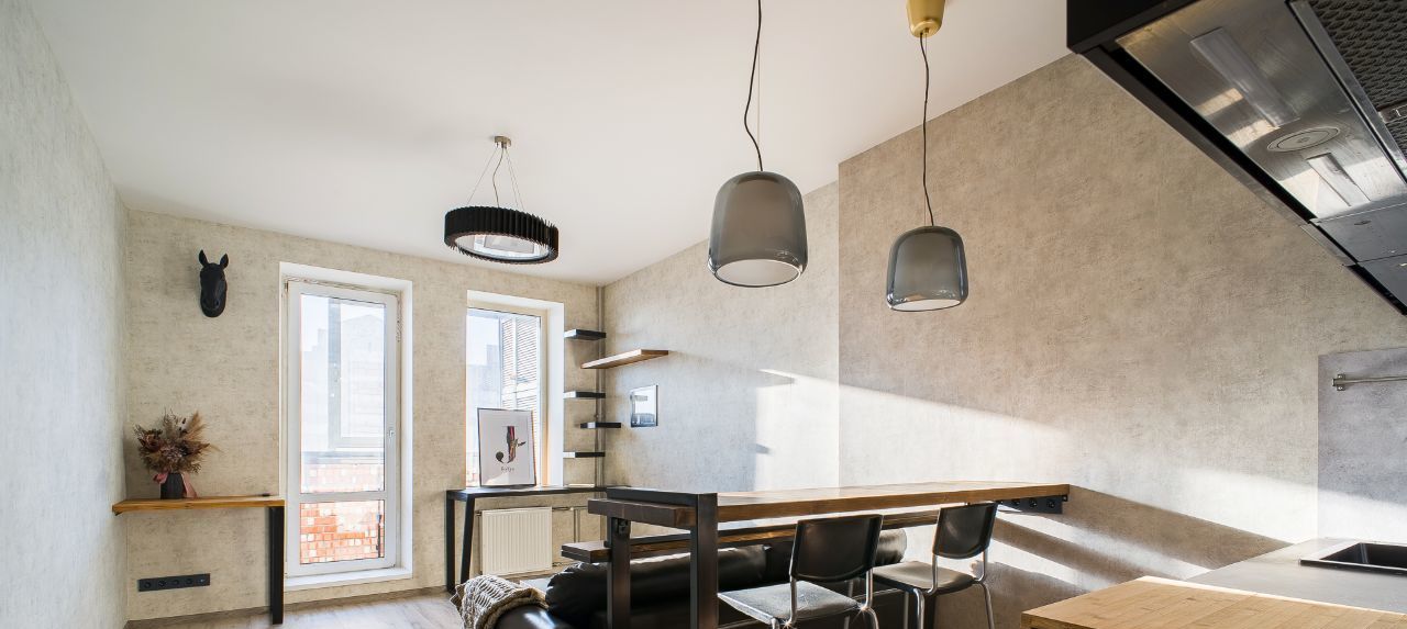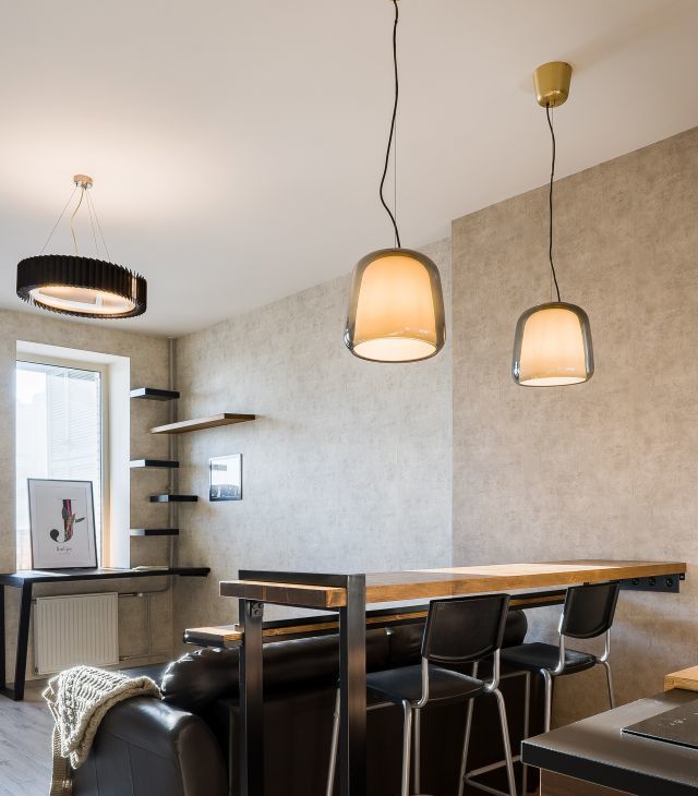 Интерьер лаконичный, есть предметы, которые были сделаны на заказ. Ремонт делали примерно 5 лет назад.
