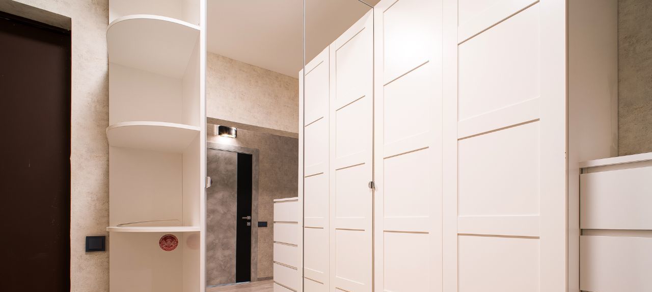 Прихожая с большим шкафом и комодом - можно структурировано разместить много одежды. Также есть шкаф на балконе и стеллаж. В прихожей есть дополнительный раскладной диван.