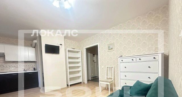 Оснащение: раскладной диван, варочная панель, мини-печь, вытяжка, стиральная машина, телевизор, фильтр для воды, шкаф и комод для хранения вещей.