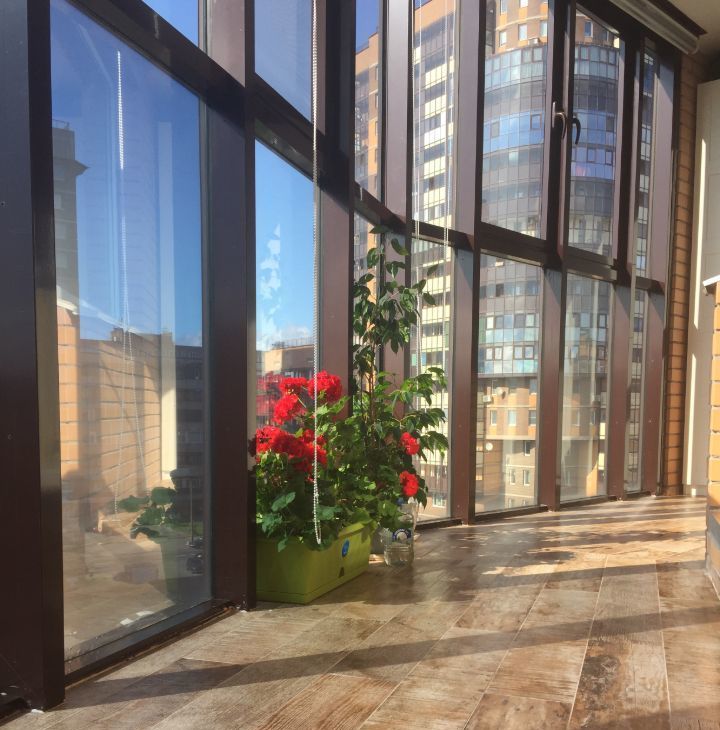 Панорамные окна + вид во двор. Рулонные жалюзи сделают ночь даже днём.
