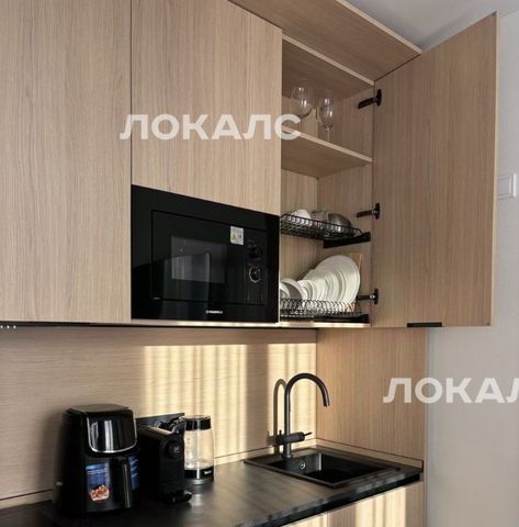 • кухня с техникой (аэрогриль, кофемашина, встроенный фильтр для питьевой воды, индукционная плита, вытяжка, микроволновка, электрический чайник, холодильник, морозильник) и со всей необходимой посудой;