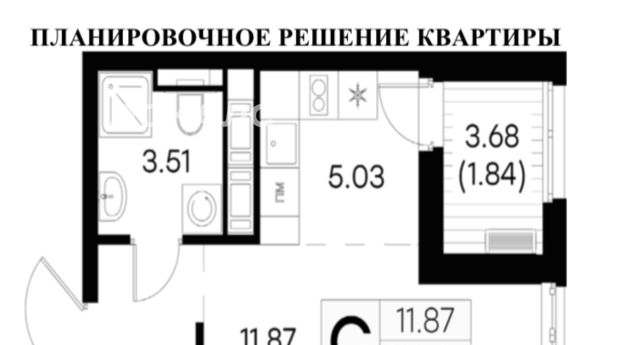Студия Санкт-Петербург ул. Шкапина, 15 (26.05 м²)