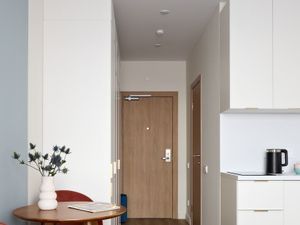 Функциональная планировка: Просторная зона кухни-гостиной с современной встроенной бытовой техникой, стильная ванная комната и зона спальни — все, что нужно для комфортной жизни.