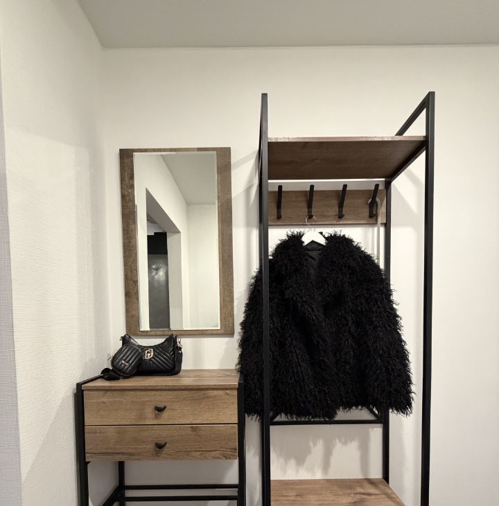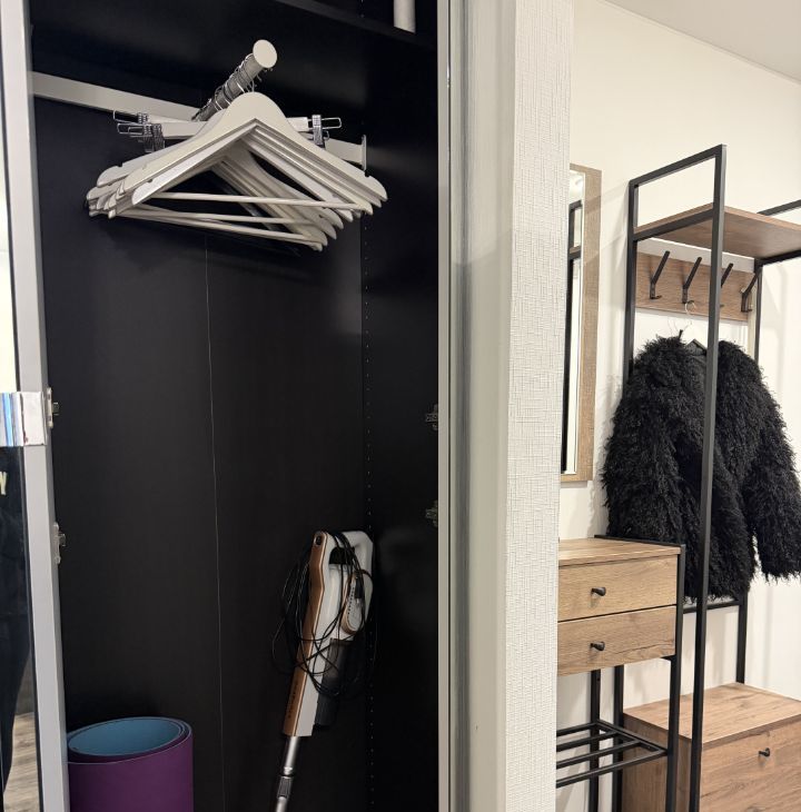 Вся необходимая мебель и техника (шкаф, диван, прикроватный столик, журнальный столик, пылесос)