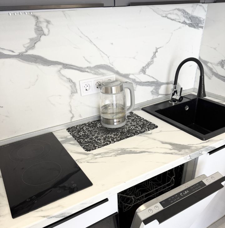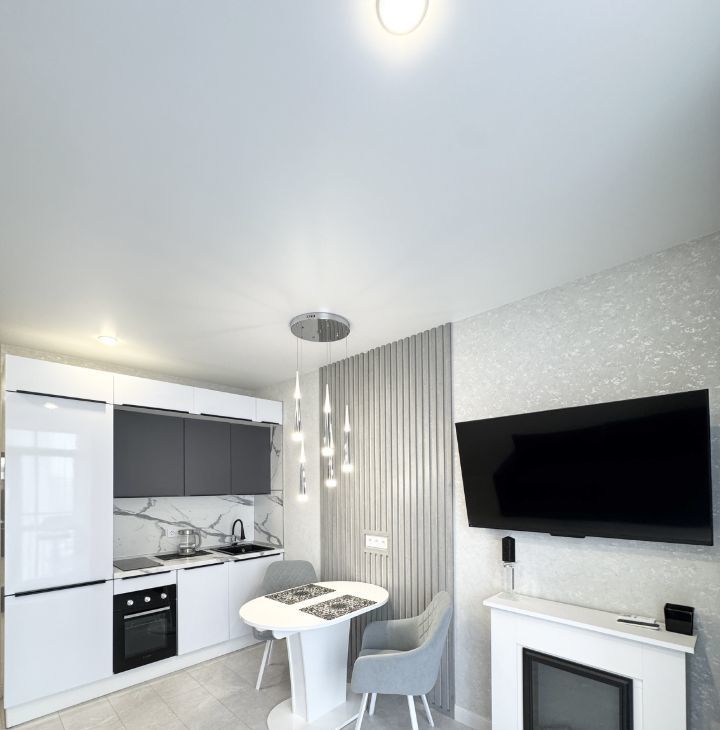 Имеется все необходимое для комфортного проживания: качественная мебель, в том числе кухонный гарнитур со встроенной техникой (двухкамерный холодильник, варочная панель, духовой шкаф, посудомоечная машина, вытяжка), телевизор, стиральная машина, кондиционер.