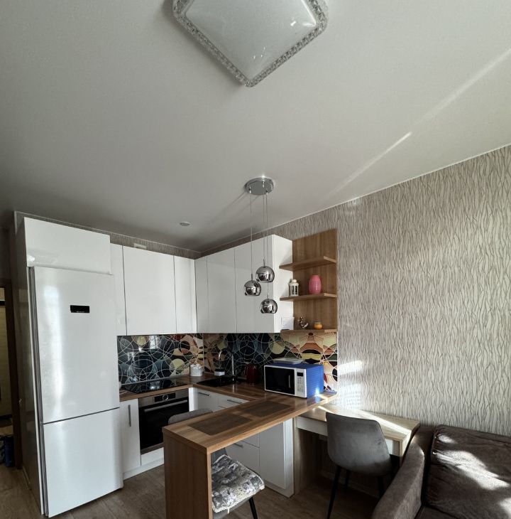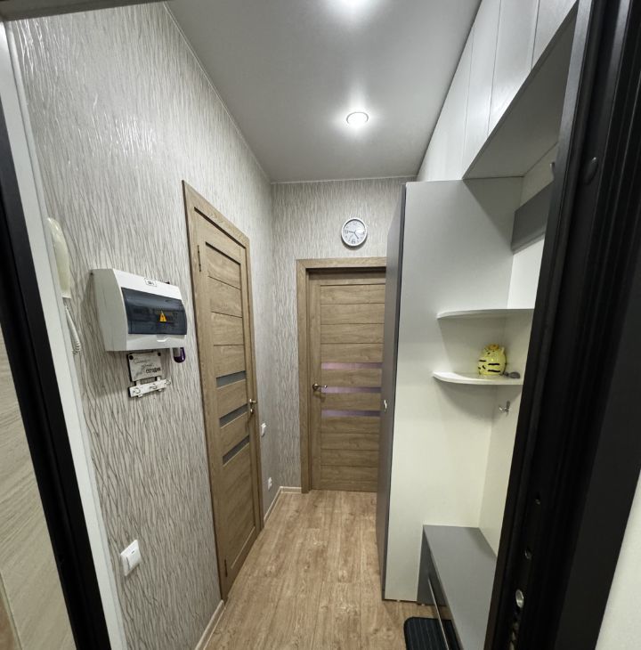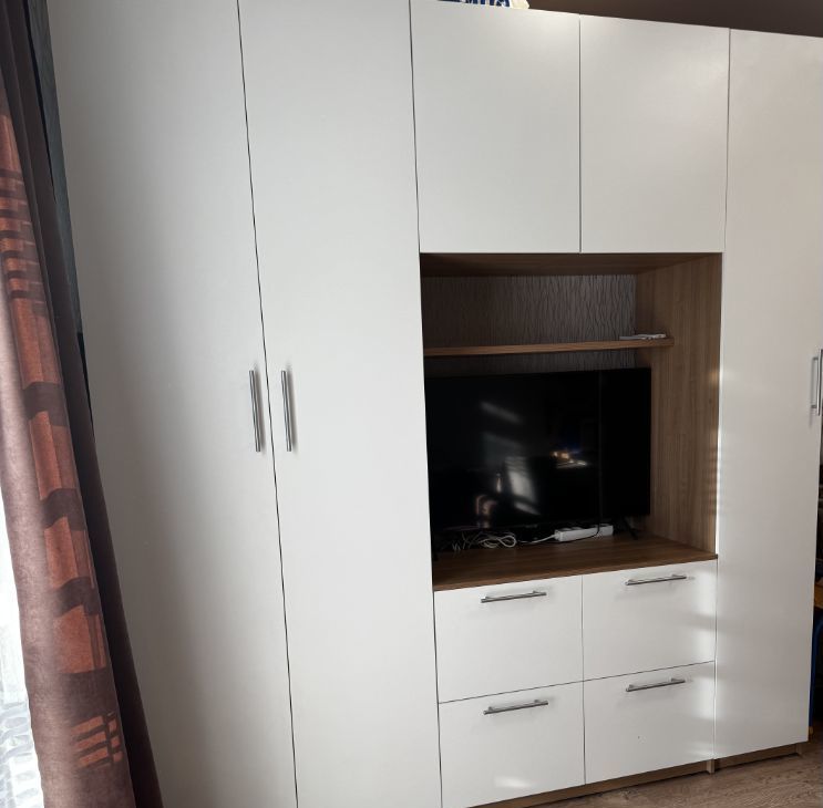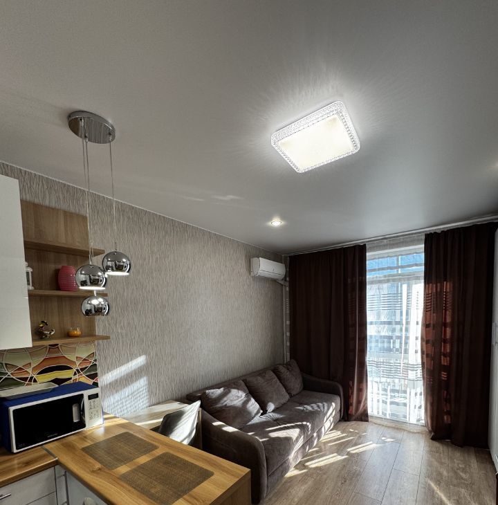 Сдается полностью благоустроенная студия на длительный срок. Квартира находится на 10 этаже из 16. В квартире выполнен косметический ремонт, что создает уютную атмосферу. Кухня оборудована всем необходимым: холодильник, плита, микроволновая печь, электрический чайники, духовой шкаф. Из мебели — вместительные шкафы и удобный диван.