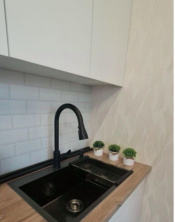 В студии есть всё для комфортного проживания: двуспальный ортопедический диван , с высокой износостойкостью, два шкафа для хранения вещей, обеденная зона, мягкие и очень удобные стулья, большая многофункциональная кухонная мойка, с выдвижным смесителем, с дозатором для жидкого мыла и с корзиной для мытья овощей и фруктов.