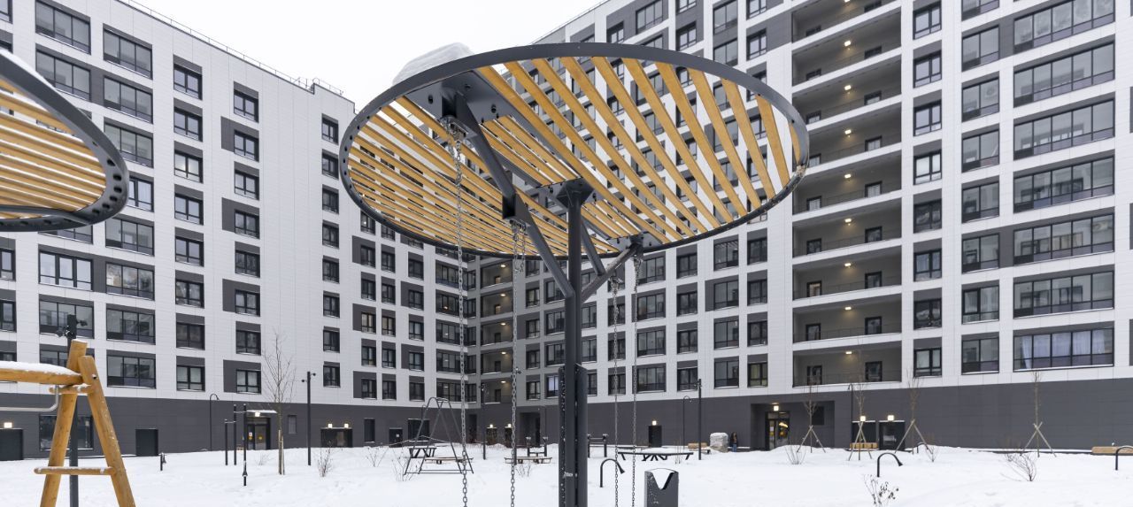 Умный дом, закрытый охраняемый двор, оснащённый для занятий спортом. В доме есть необходимые магазины, аптеки.