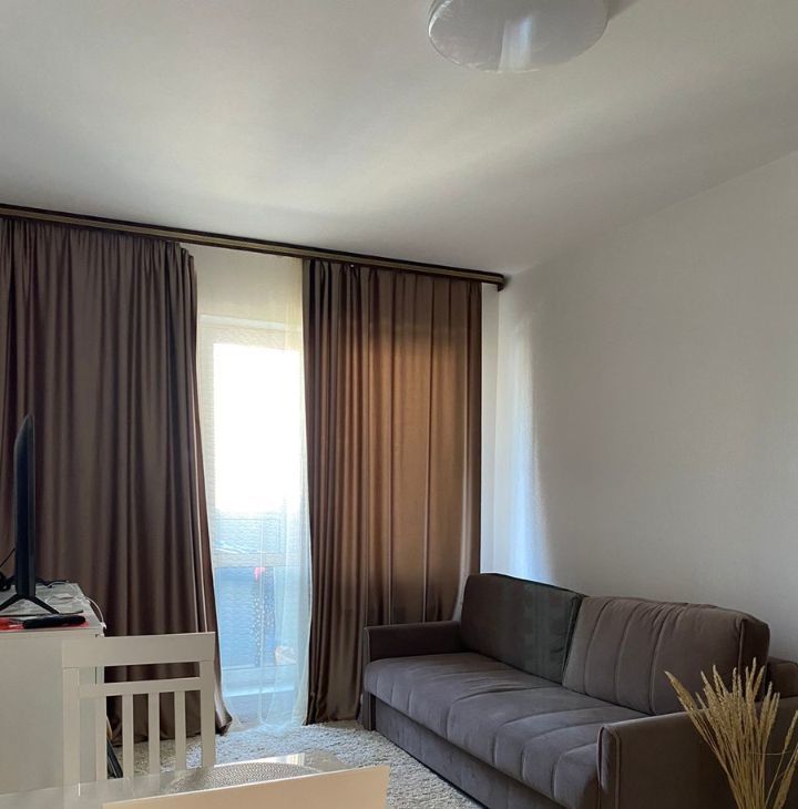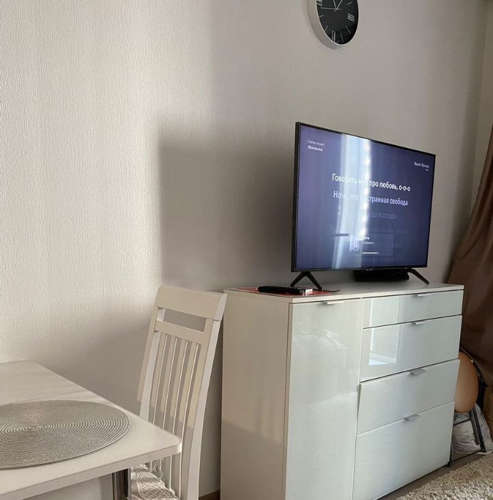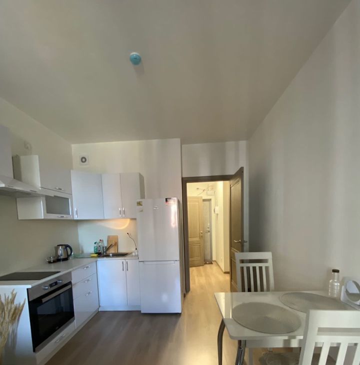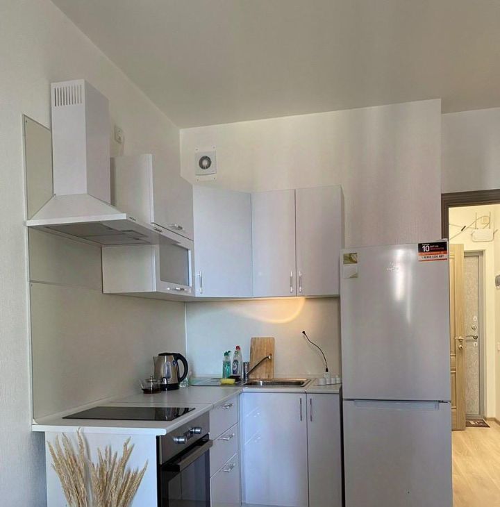В квартире есть все необходимое для комфортного проживания. Кухня, оснащенная всем необходимым, включает в себя холодильник, встраиваемую варочную панель, духовой шкаф, электрочайник. В квартире также установлен комфортный диван и вместительный шкаф, что позволяет максимально эффективно использовать пространство.