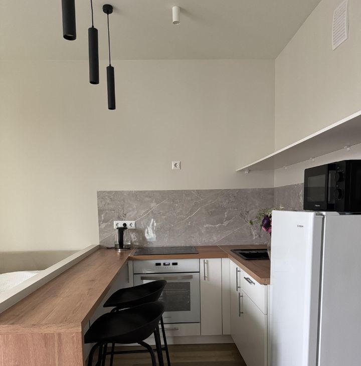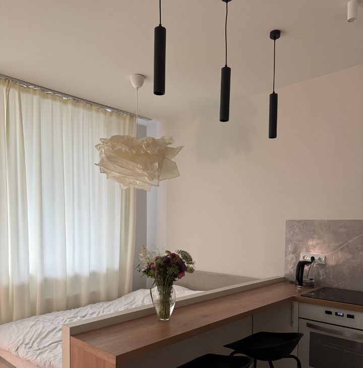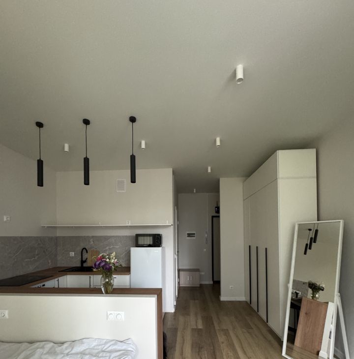Уютная светлая студия с большим балконом и свежим ремонтом. Мебель и техника новые, есть все для комфортного проживания. Можно с небольшим животным, на окнах сетка антикошка. Установлен WI-Fi 500мбит/с - максимально комфортно для работы/учебы из дома.